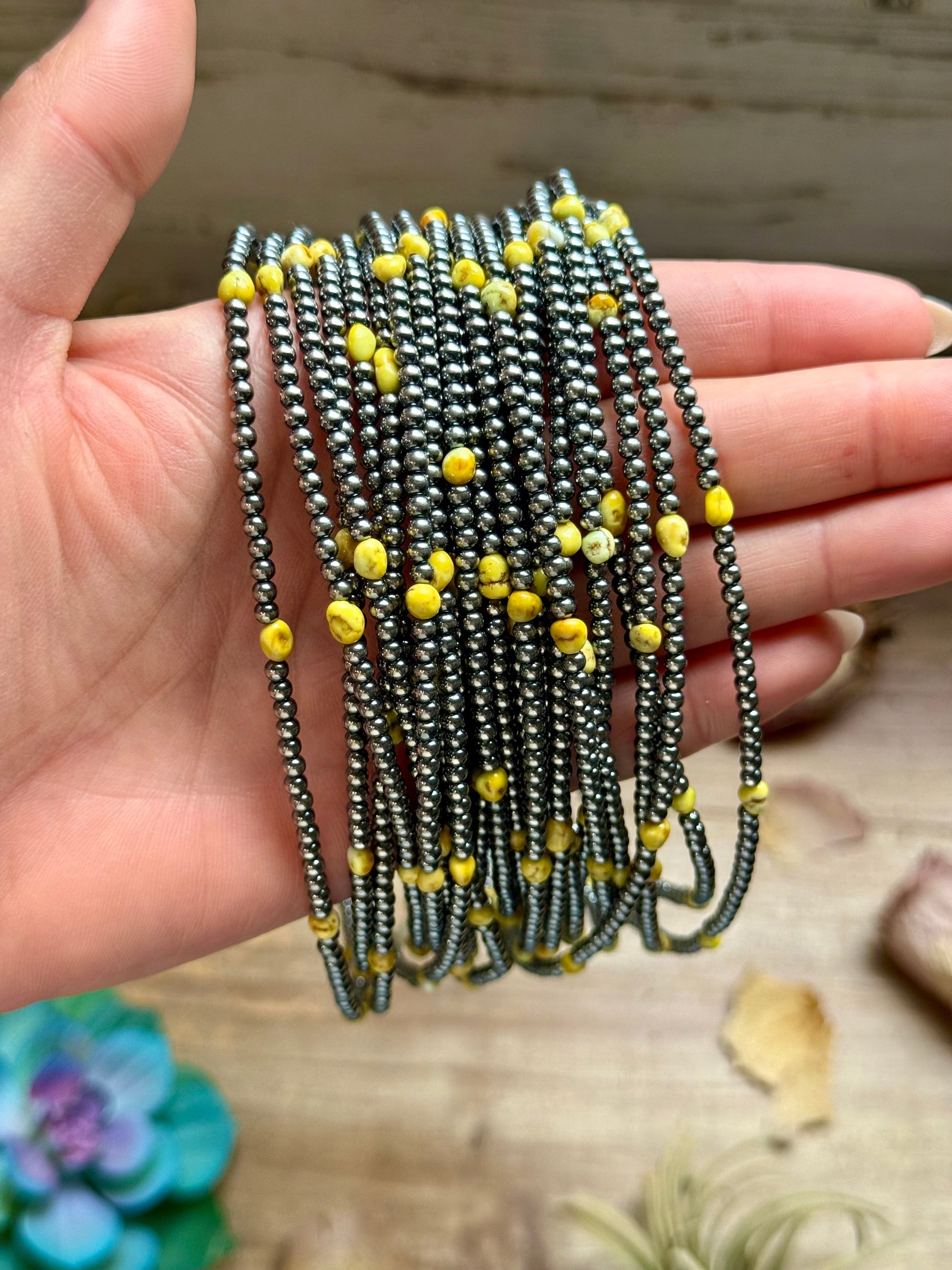 This beautiful 15 inch necklace is handcrafted with palomino turquoise beads paired with 3mm sterling silver pearls. Finished with an extender for adjustable length and comfortable wear, this necklace offers a soft natural tone that is easy to wear alone or layered.
