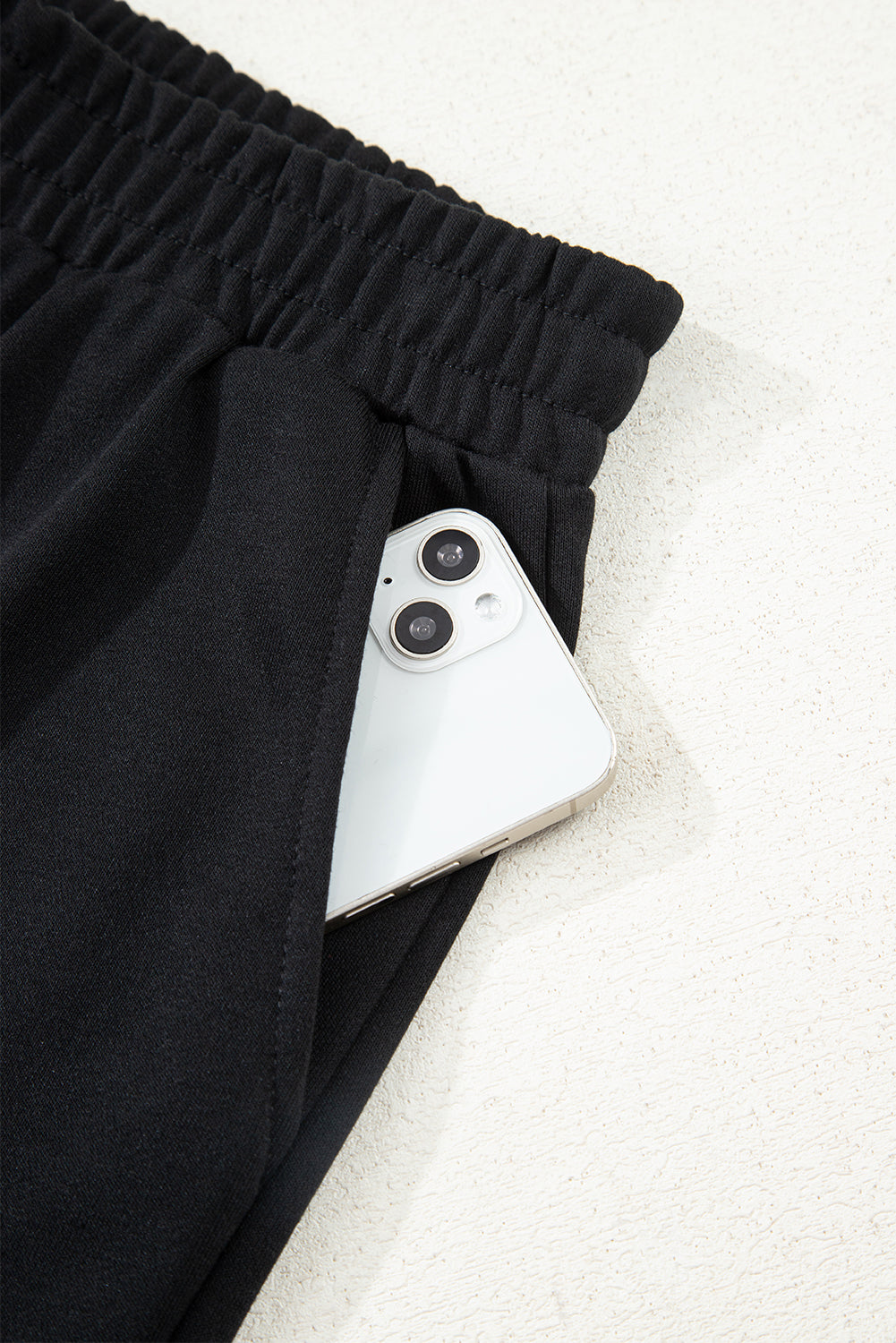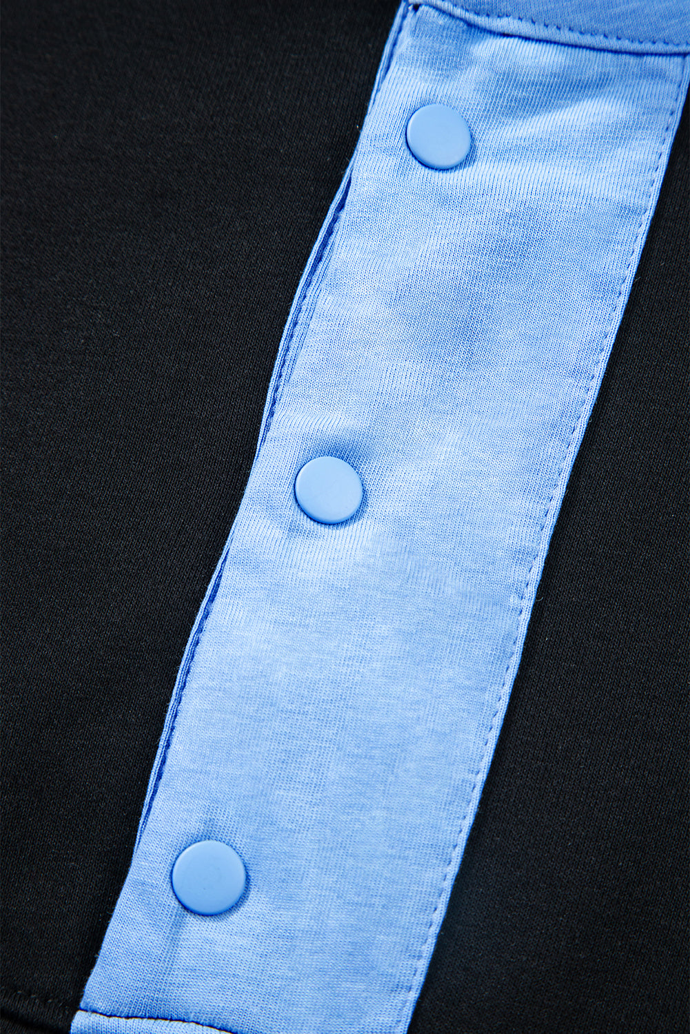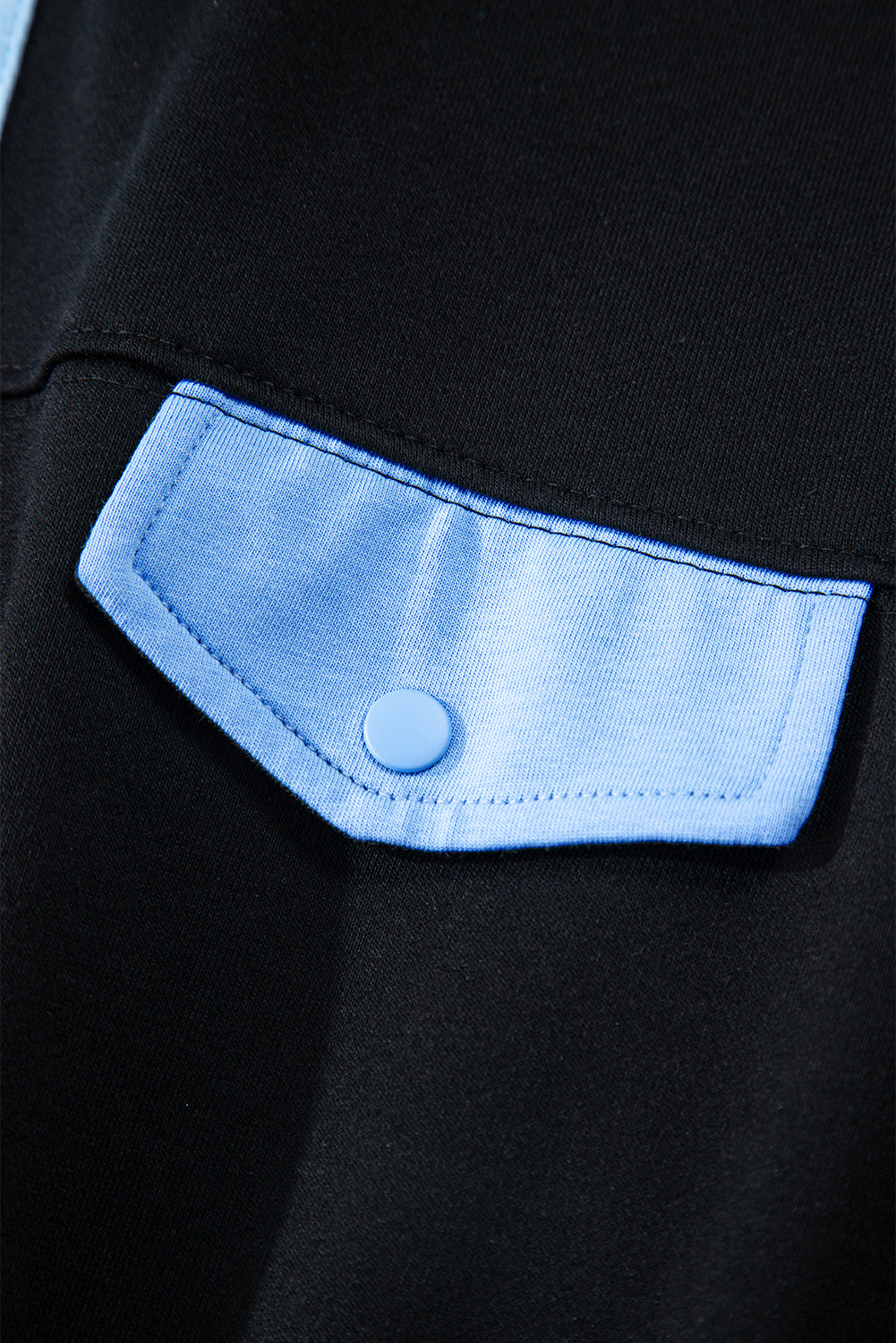 Black Color Block Patchwork Half Button Pullover and Shorts 2pcs Outfit