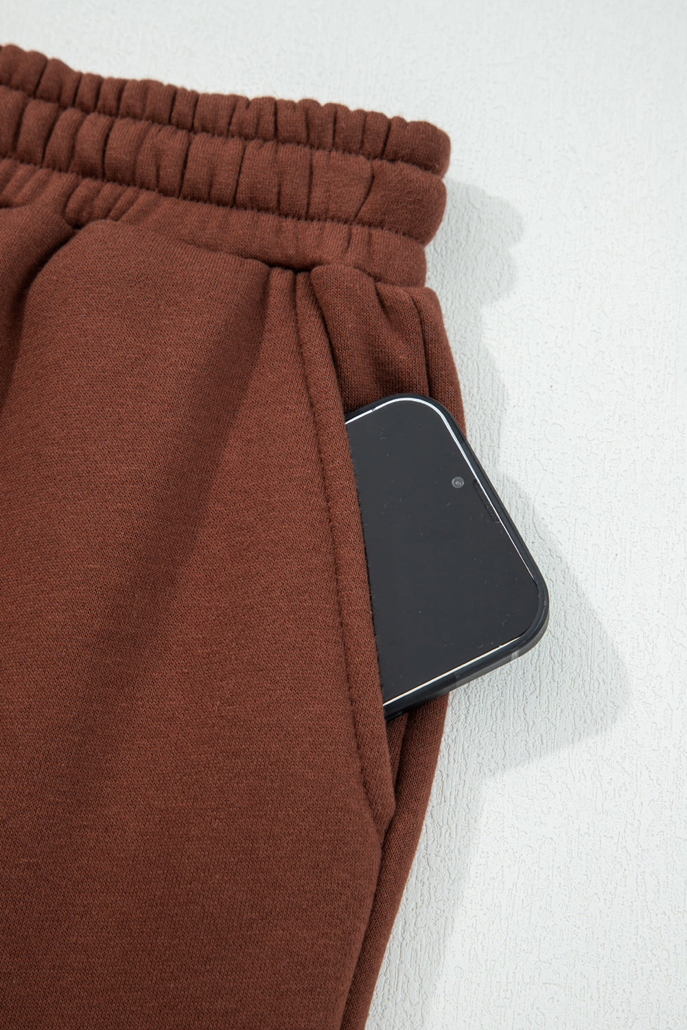 Coffee Fleece Lined Leopard Drawstring Elastic Waist Solid Pants