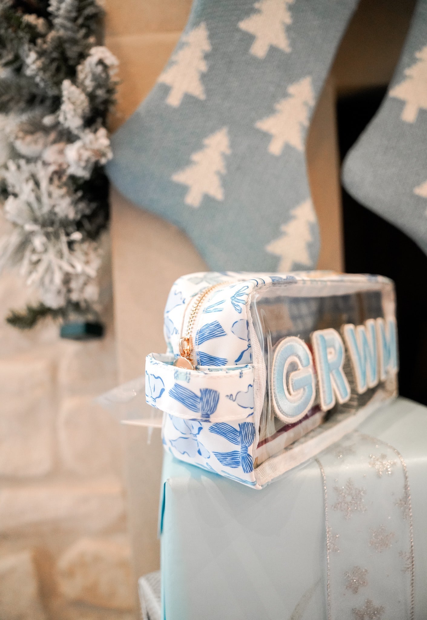 GRWM - Blue Bows Clear Large Makeup Bag