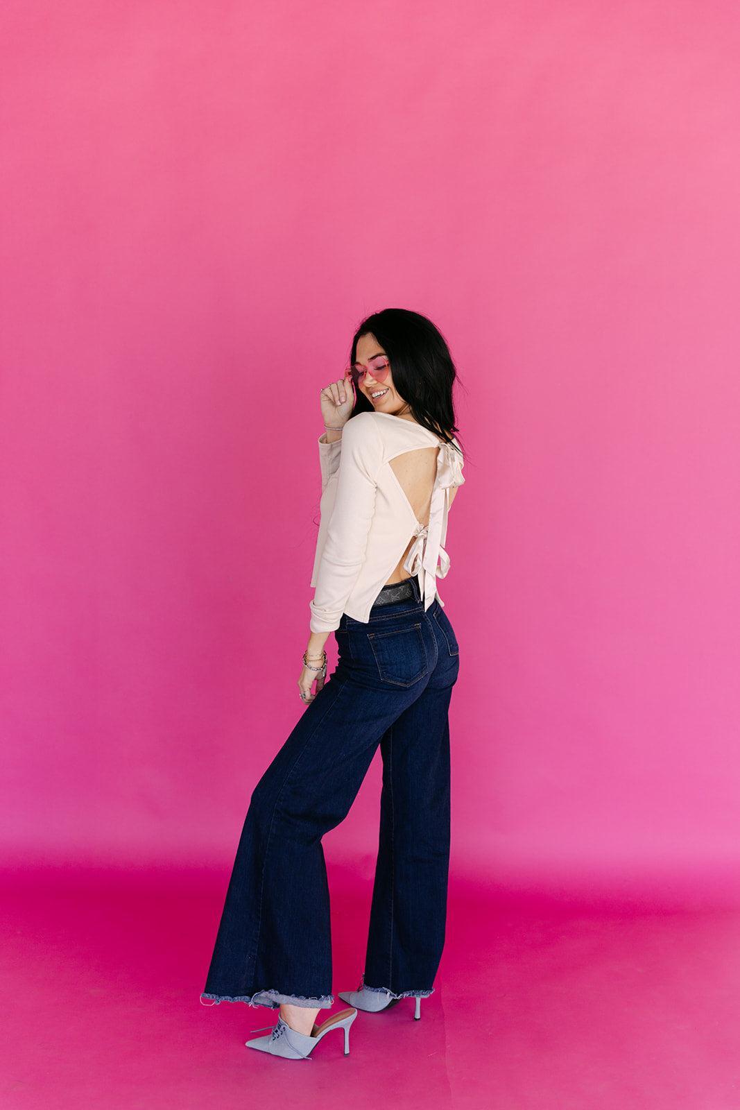 Oversized, Chic loose fitting sweater with open-back bow detail