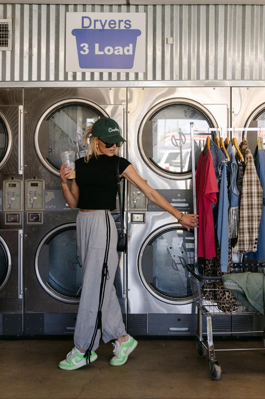 A trendy, side-striped jogger that is the perfect mix of comfortable and stylish. Featuring an open-side detail with bow ties.