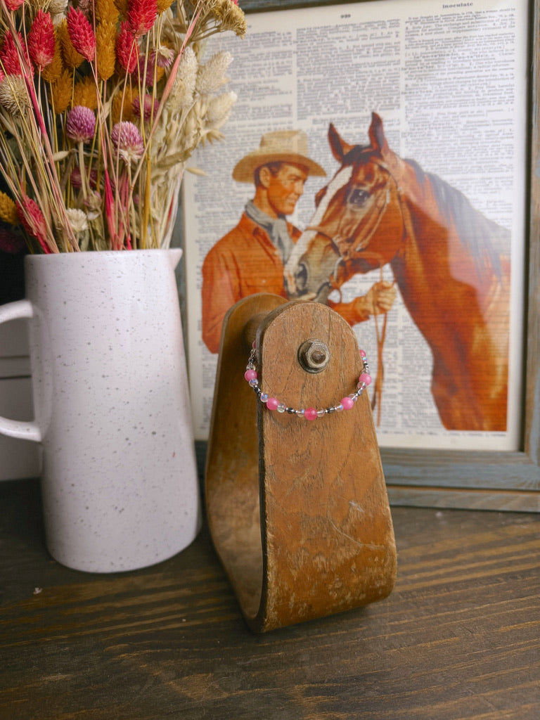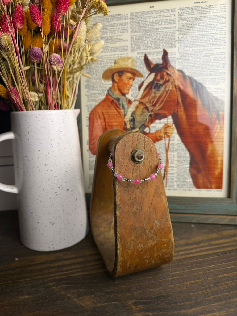 7 INCHES CLASP TO HOOK. HAND BEADED BY ALISHA.