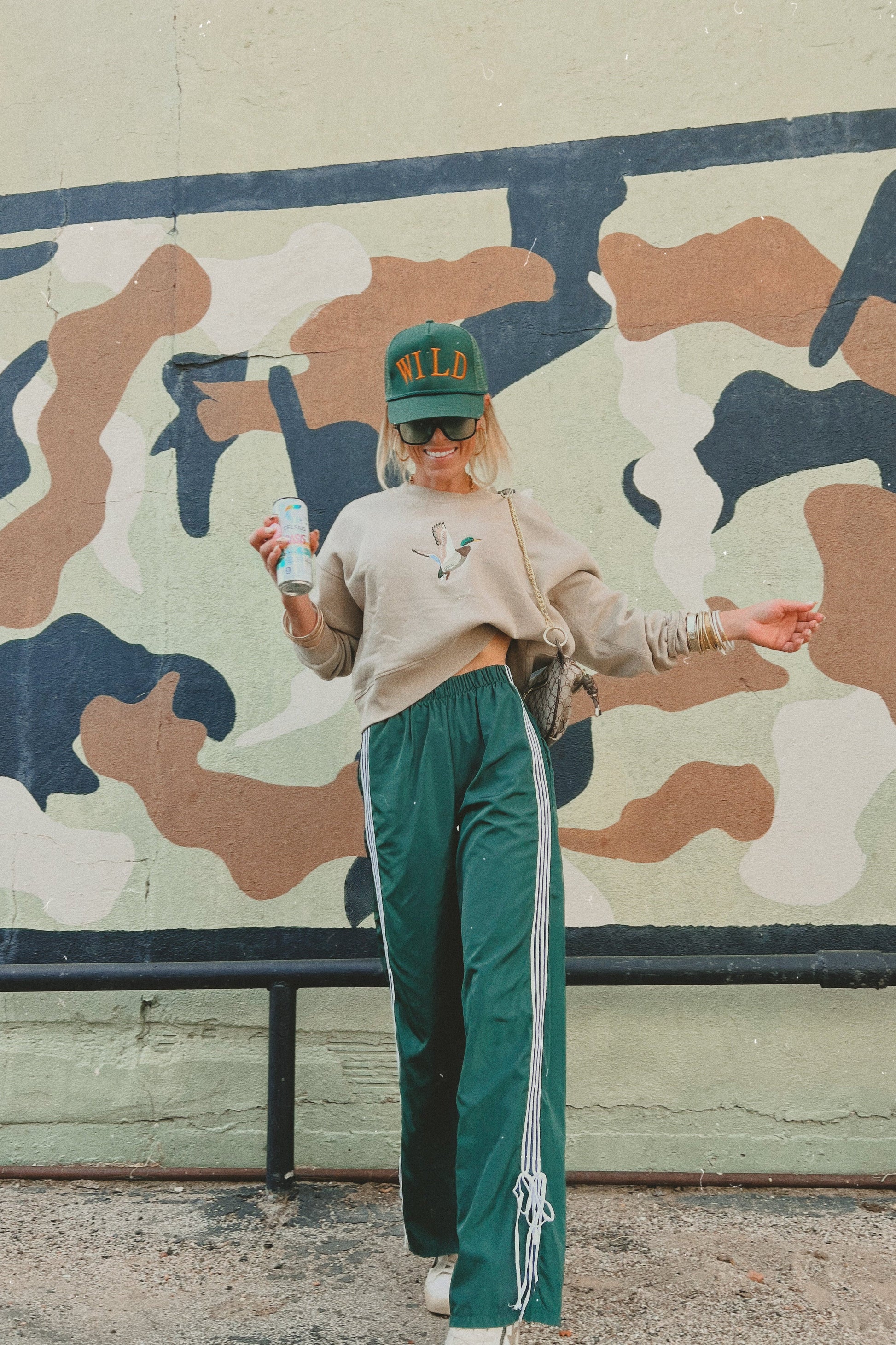 Cute AND trendy - The perfect track pant featuring side stripe detailing and a ribbon tie ankle with an elastic waist band.
